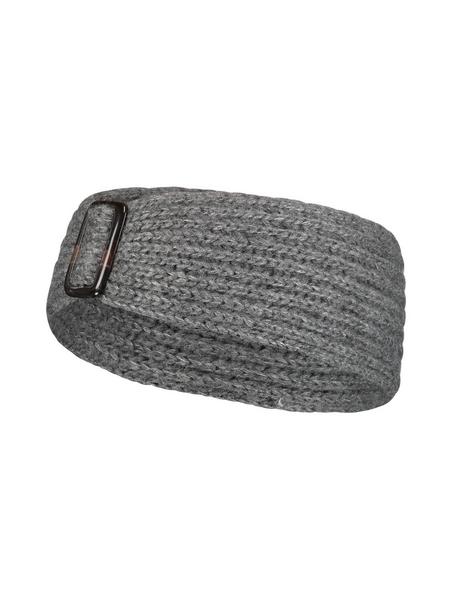 Das grob gestrickte Stirnband hat eine farblich passende Schnalle auf der Vorderseite.