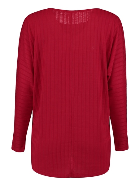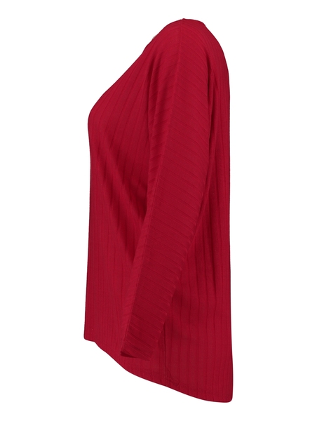 Oversized Pullover mit längerem Schnitt, Längsstreifenoptik, Rundhalsausschnitt und 3/4-Ärmeln.