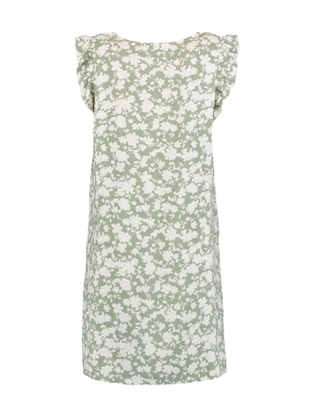 Sommerliches Kleid aus Viskose mit Rundhalsausschnitt und Rüschen an der Armöffnung.