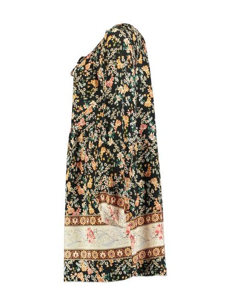 langarm Kleid mit allover print, V-Ausschnitt, Ärmel mit Gummizug