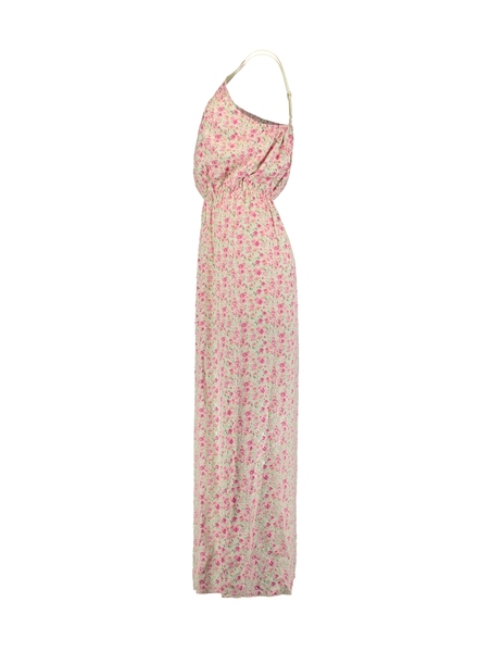 Langes Trägerkleid mit Taillenbund, verstellbaren Trägern, Rundhalsausschnitt und Blumenprint
