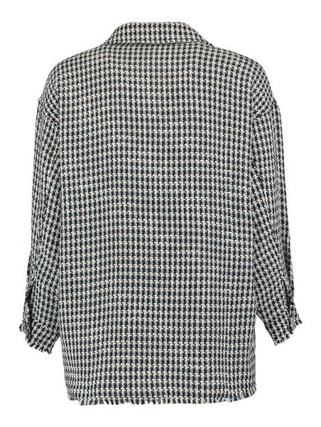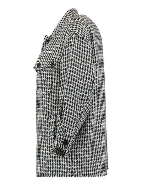 Weites Tweed-Overshirt mit offenem Saumen, Knopfleiste, aufgesetzten Taschen und seitlichen Eingrifftaschen.