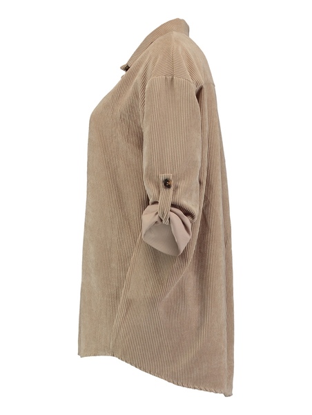 Bluse mit längerem und lockerem Schnitt. Knopfleiste, Hemdkragen. Lange Ärmel mit Button-up. Feinkordoptik