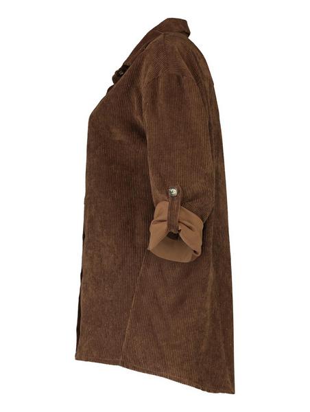 Bluse mit längerem und lockerem Schnitt. Knopfleiste, Hemdkragen. Lange Ärmel mit Button-up. Feinkordoptik