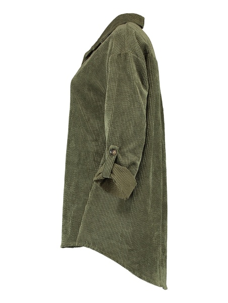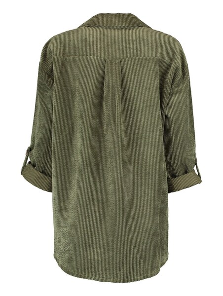 Bluse mit längerem und lockerem Schnitt. Knopfleiste, Hemdkragen. Lange Ärmel mit Button-up. Feinkordoptik