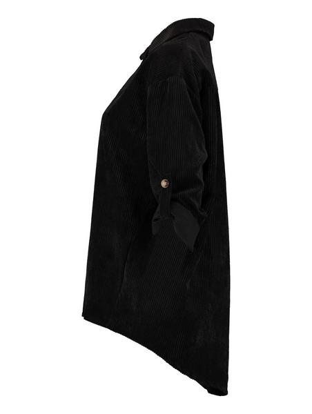 Bluse mit längerem und lockerem Schnitt. Knopfleiste, Hemdkragen. Lange Ärmel mit Button-up. Feinkordoptik