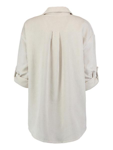 Bluse mit längerem und lockerem Schnitt. Knopfleiste, Hemdkragen. Lange Ärmel mit Button-up. Feinkordoptik