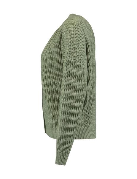 Strickjacke mit Knopfleiste, Langarm, V-Neck, Ripp-Optik