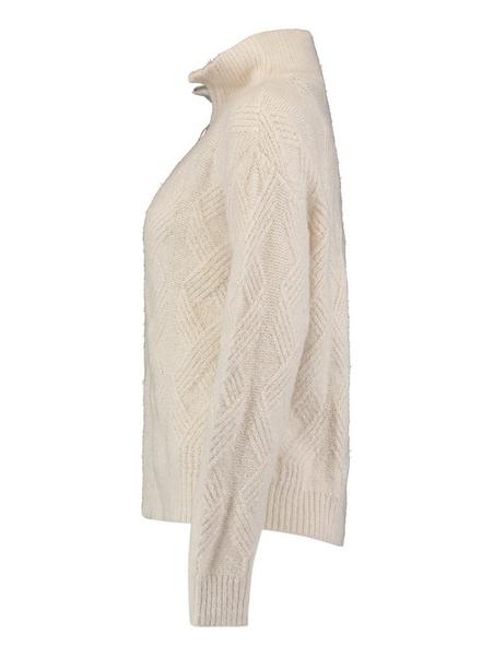 Strickpullover mit Reißverschlusskragen und Zopfstrickmuster.