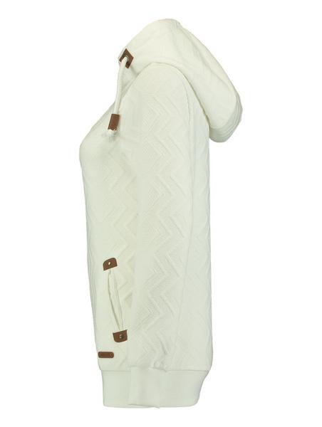 Sweatshirt mit strukturierter Oberfläche und breiten Bündchen. Die Bänder des Tunnelzugs, der Kapuze und die seitlichen Tschen haben Kunstlederdetails.