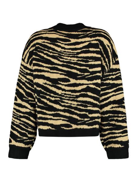 Strickpullover mit Balonarm im animal Print. Rippbündchen und Rippkragen.