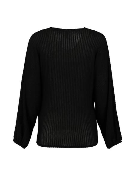 Shirt mit V-Ausschnitt und Gummibund. Fixierte Wickeloptik mit Längssteifenoptik und strukturierter Oberfläche.