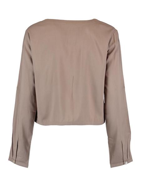 Bluse mit Knopfleiste, mit einem Tunnelzug am Saum, Langarm, V-Neck