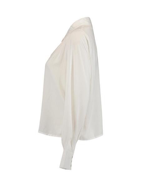 Bluse mit Knopfleiste und langen Manchetten. Hemdkragen und Ziernaht auf der Schulterpartie.