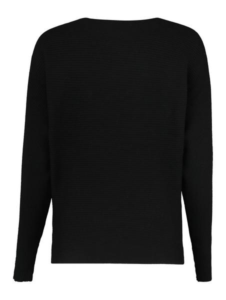 Langarmpullover mit breitem Rundhalsausschnitt und Zopfmuster an den Fledermausärmeln. Er hat eine strukturierte Oberfläche in Querstreifenoptik und eine lockere Passform.