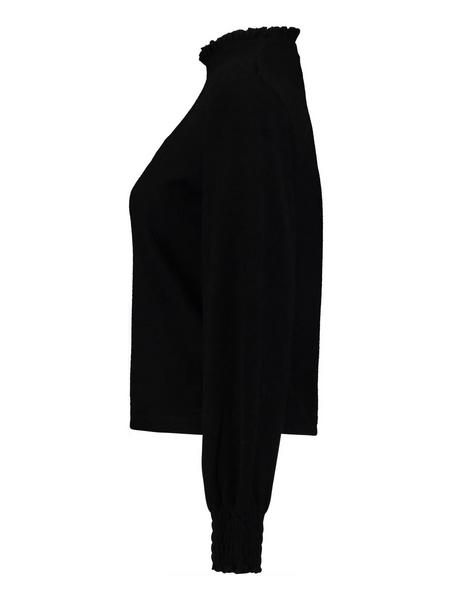 Langarmshirt mit hohem Kragen, weichergriff und Raffung an den Ärmeln.