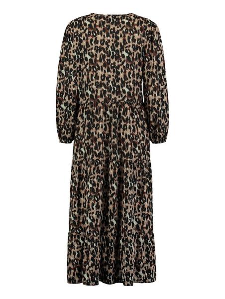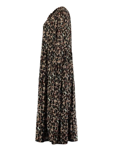 Langärmeliges Kleid in Maxi-Länge mit V-Neck und Volants