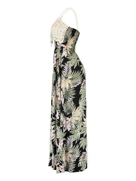 Trägerkleid mit Crochet-Oberteil, elastischem Taillenbund und All-Over Print
