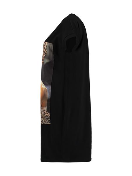 Kurzärmeliges kurzes Kleid mit Rundhalsausschnitt und appliziertem Print