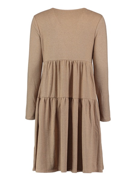 Langärmliges Kleid mit einem V-Ausschnitt. Das Kleid hat eine normale Passfom und Volants.