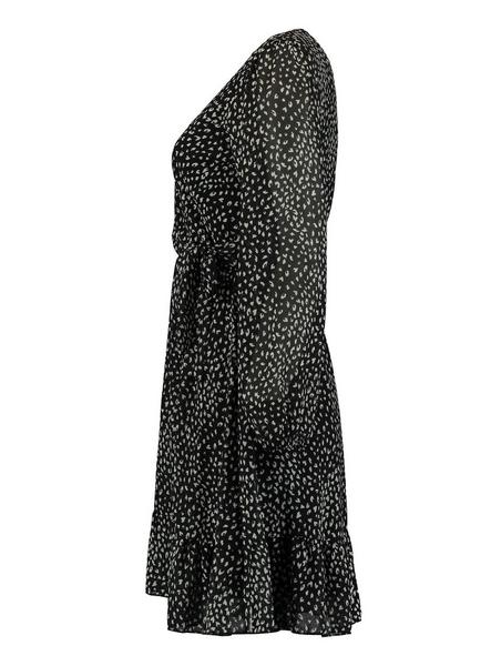 Kurzes langärmeliges Kleid mit V-Neck mit Volant-Details