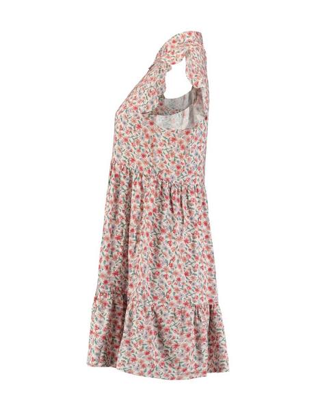 Ärmellose Hemdblusenkleid mit Rüschen an den Ärmeln, durchgängiger Knopfleiste, Kentkragen und floralem Print