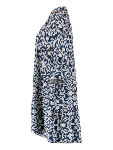 Kleid mit All-Over-Print, 3/4-Ärmeln, V-neck, normale Länge, lockere Passform