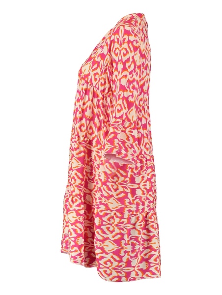 Kleid mit All-Over-Print, 3/4-Ärmeln, V-neck, normale Länge, lockere Passform