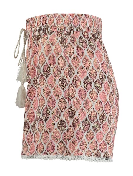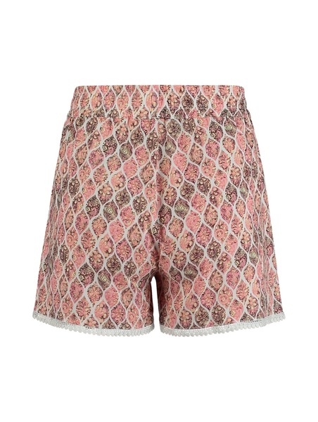 Kurze Viskose-Hose mit elastischen Bündchen, Spitzen-Detail am Saum und All-Over Print
