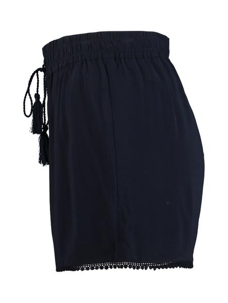 Kurze Viskose-Hose mit elastischen Bündchen, Spitzen-Detail am Saum