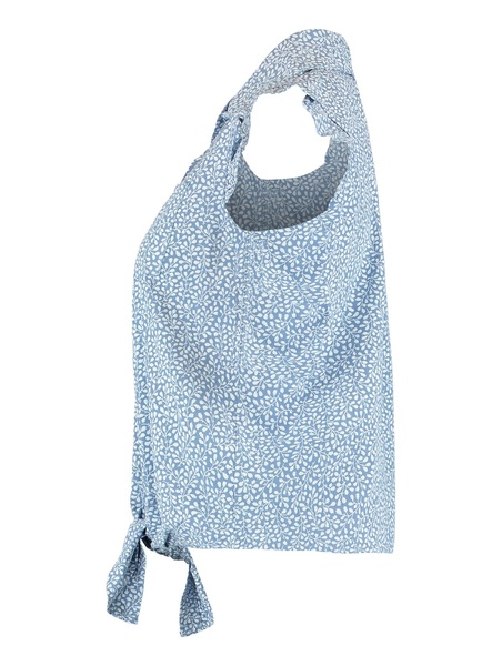 Ärmellose durchgeknöpfte Bluse mit Kragen, frontal knotbar, allover print