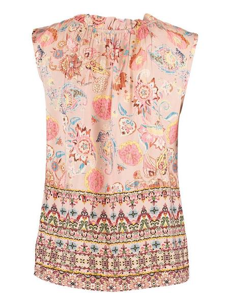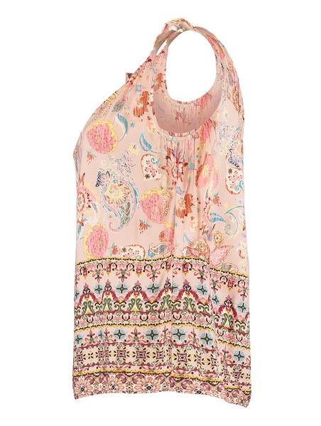 ärmelloses leichtes Viskose Top mit gerafftem Rundhalsausschnitt, allover print