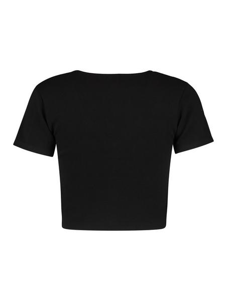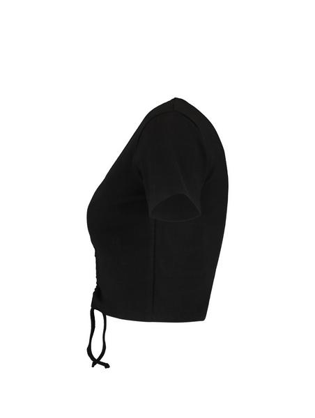 T-Shirt in Ripp-Optik, V-Neck, Cropped-Top, Tunnelzug an der Vorderseite