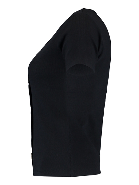 T-Shirt mit Knopfleiste, Rundhals-Ausschnitt, Knopfleiste, elastische Qualität