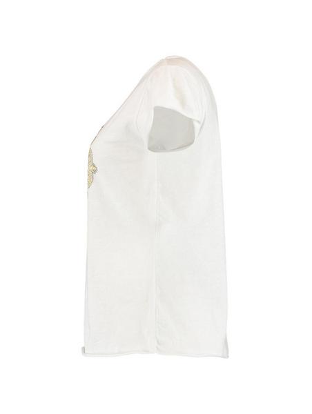 T-Shirt mit Rundhalsausschnitt, Print und Schmucksteinapplikation