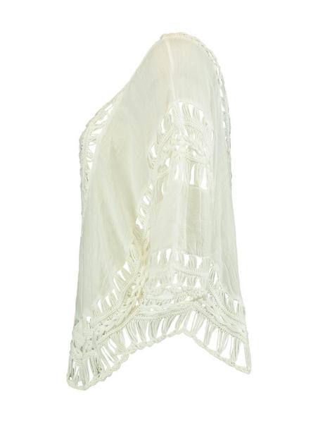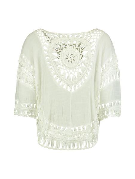 Oberteil mit Rundhalsausschnitt, Crochet-Einsatz, abgerundeter Saum