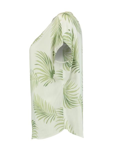Leichtes Kurzarmshirt aus Viskose mit Keyhole-Verschluss, Rundhalsausschnitt, All-Over-Print und lockerem Schnitt
