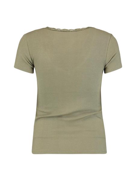 T-Shirt mit Spitze am V-Ausschnitt, normale Passform, fließendes Material
