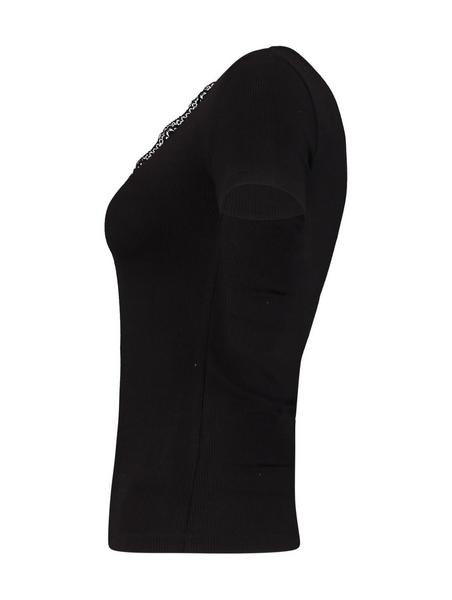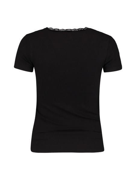 T-Shirt mit Spitze am V-Ausschnitt, normale Passform, fließendes Material