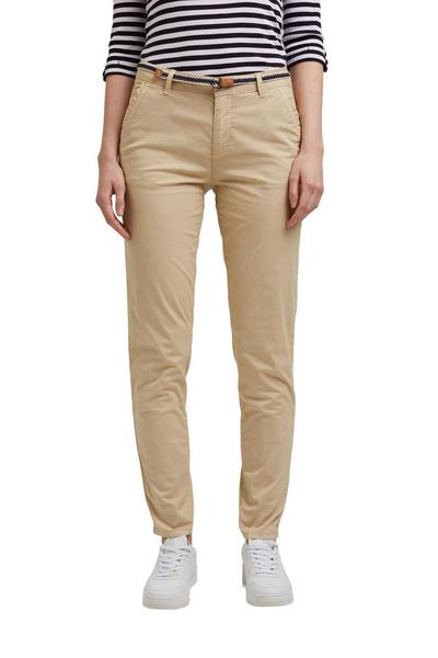* Leichter Baumwollstoff mit hohem Stretchanteil * Geflochtener, zweifarbiger Gürtel mit Details in Leder-Optik und doppelter Metallschnalle * Zwei seitliche Einschubtaschen mit Penny Pocket * Zwei falsche Taschen mit Zierknöpfen hinten * Bund mit Gürtelschlaufen, Knopf und Metallzipper * Washed-Look