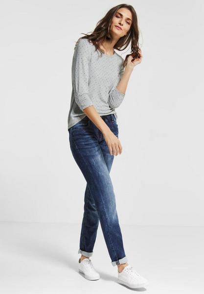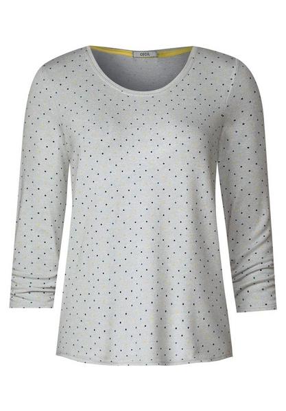 Sportiver Kuschel-Style! Dieses Shirt ist das perfekte Alltagsteil. Super weich liegt das Material auf der Haut und der Punkteprint lässt es auch optisch überzeugen. Die 3/4 Ärmel betonen den Look noch zusätzlich und punkten mit Raffung. Ein easy Kombipartner für alle die es sportlich mögen.\n\n\n Kuschelig weich\n Punkteprint\n Rundhalsausschnitt\n 3/4 Ärmel mit Raffung\n Maße bei EU-Größe XS ca.:\n Länge 67cm, Breite 51cm, Taille 50cm\n Material: 75% Viskose, 22% Polyester, 3% Elasthan\n\n