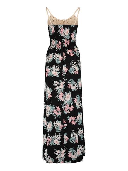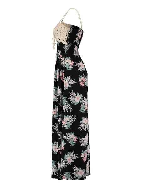 Trägerkleid mit Crochet-Oberteil, elastischem Tailenbund und Blumenprint.