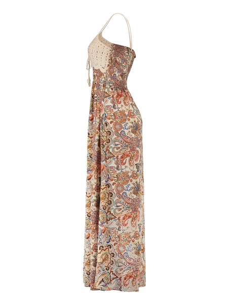 Trägerkleid mit Crochet-Oberteil, elastischem Tailenbund und Blumenprint.