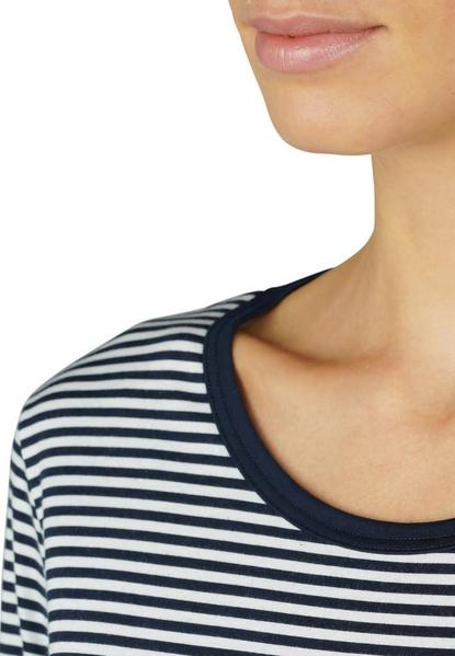 * Legere Passform * Rundhalsausschnitt * Kurzarm * Feine Ringel * Knielang * Natürliches Tragegefühl * Unser Model ist 180 cm groß und trägt Größe 38 * Maschinenwäsche bei 40° C, Feinwäsche, nicht Trockner geeignet