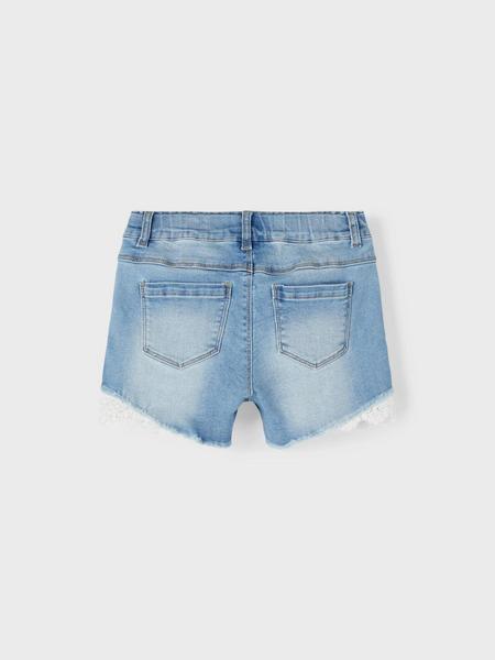 Kreiere ein stylishes Outfit für dein Kind mit leichten und luftigen Sommerstyles, die perfekt für sonnige Tage und laue Nächte sind. Denim ist ein robuster Webstoff, der in vielen verschiedenen Designs erhältlich ist und einen einzigartigen Look schafft.- Detailart : Shorts- Stoff : Denim- Beindetails : Offene Säume- Waist/Rise : Regular Waist- Wash Finish : 3D-Knittereffekt- Verschluss/Hosenschlitz : Hosenschlitz mit Haken- und Reißverschluss- Weitere Details : Spitze- Weitere Details : Verstellbarer Bund- Tasche sonstige: Five-Pocket-Style mit trendigem Look- PASSFORM : Slim Fit