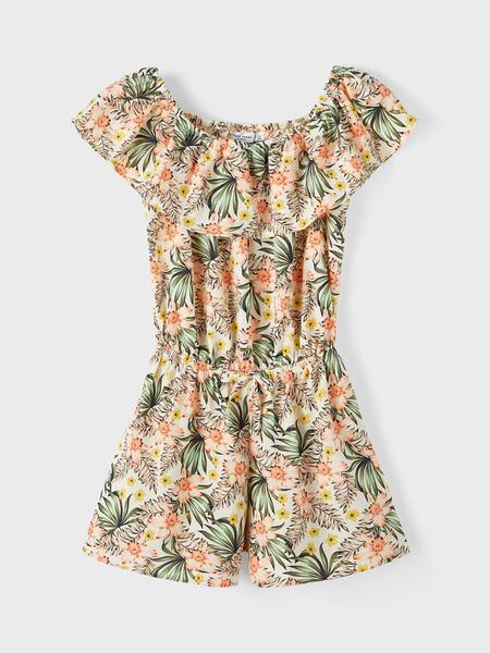 Erweitere die Garderobe deines Kindes um einen Overall für einen coolen und lässigen Look. Webware verfügt über ein markantes Gittermuster und eine fein strukturierte Oberfläche, die für einen cleanen und klassischen Look sorgt.- Detailart : Playsuit- Stoff : Webware- Weitere Details :- - Elastischer Bund- - Spitze- Printart : Print wiederholt sich auf dem ganzen Stoff- Ärmelform : Schulterfrei