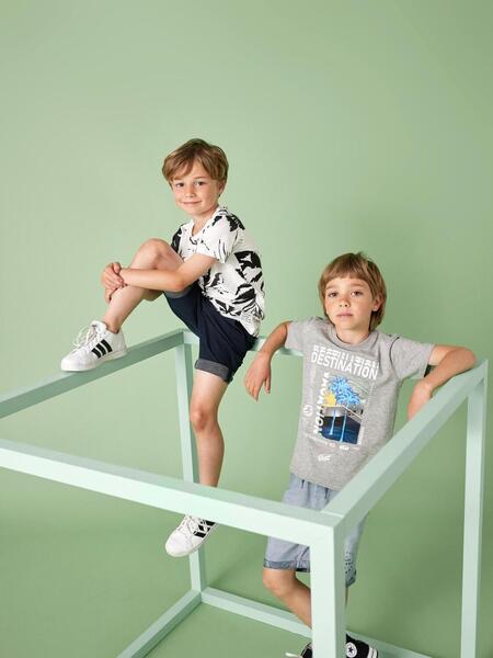 Aktualisiere die Garderobe deines Kindes mit coolen Oberteilen, die perfekt für den Alltag und besondere Anlässe sind. Jersey ist ein leichter und dehnbarer Stoff mit einer weichen Außen- und Innenseite und sorgt für ein angenehmes Tragegefühl und Bewegungsfreiheit.- Detailart: T-Shirt- Stoff: Jersey- Printart: Weicher Gummiprint- PASSFORM: Regular Fit- AUSSCHNITTFORM: Rundhalsausschnitt- ÄRMELLÄNGE : Kurze Ärmel (S/S)MIT BIO-BAUMWOLLEDieses Produkt enthält Bio-Baumwolle. Bio-Baumwolle wird ohne schädliche Chemikalien angebaut. Der Anbau von Bio-Baumwolle schont die natürlichen Ressourcen und schützt die Bauern.
