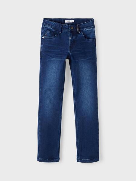 Finde die perfekte Jeans und überrasche dein Kind mit zeitlosen Styles, die einen coolen Look und jede Menge Bewegungsfreiheit bieten. Denim mit Fleece an der Innenseite ist weich und robust und sorgt für Wärme und ein angenehmes Tragegefühl.- Detailart : Jeans mit Regular Fit- Stoff : Denim mit Fleece- Waist/Rise : Regular Waist- Finish : Used-Optik für mehr Charakter- Verschluss/Hosenschlitz : Haken- und Reißverschluss- Weitere Details :- - Verstellbarer Bund- - Label- - Nieten- Tasche sonstige : Five-Pocket-Style mit trendigem Look- PASSFORM : Ryan ist eine Jeans mit Regular Fit von oben bis unten