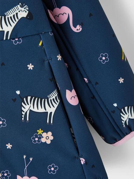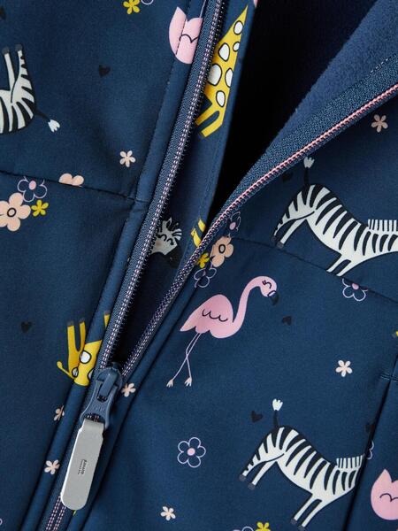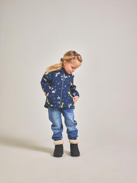 Erforsche die Wunder der Natur in funktioneller Outerwear, die dein Kind trocken und warm hält. Softshell ist ein robustes, atmungsaktives, wind- und wasserdichtes Material. Es eignet sich perfekt zum Spielen im Freien an bewölkten, windigen und leicht regnerischen Tagen. Die ECO wasserabweisende Behandlung garantiert, dass keine fluorhaltigen Chemikalien zur Imprägnierung des Produkts verwendet wurden.- Detailart : Jacke- Tasche Hände : Fronttaschen- Bündchenart : Elastische Ärmelbündchen- Funktion : ECO wasserabweisende Imprägnierung- Stoff : Softshell- Innenfutter : Warmes und weiches Fleecefutter an Körper & Kapuze- Länge/Größe : Kurz- Verschluss/Hosenschlitz : Reißverschluss- Weitere Details : Aufnäher- Konzept : Malta ist wasserdicht bis 5.000 mm, hat eine Atmungsaktivität von 500 g/m2/24 h und ist winddicht- Printart : Print wiederholt sich auf dem ganzen Stoff- ÄRMEL : Lange Ärmel (L/S)