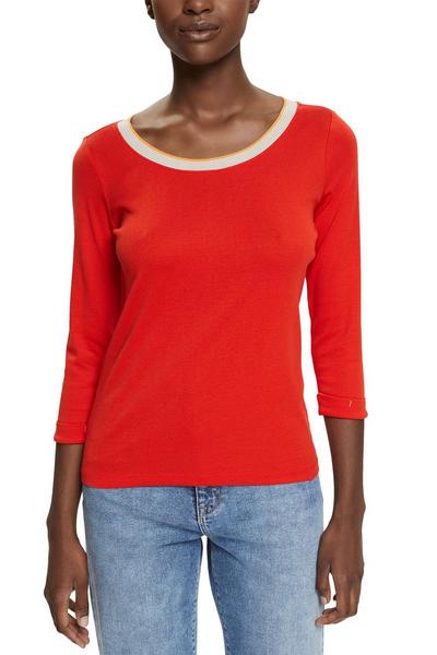* Jersey aus reiner Baumwolle * Rundhalsausschnitt mit gestreiftem Rippbündchen * 3/4-Ärmel mit fixierten Umschlagsäumen * Körpernahe Passform